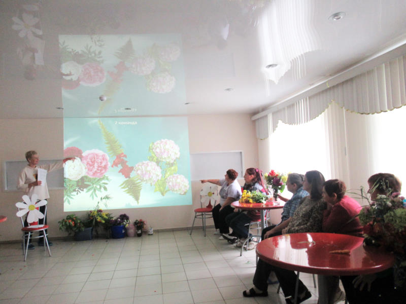 Многие народы, любящие цветы, издавна проводили в их честь праздники. Вот и сегодня получился праздник цветов. Участники принесли множество садовых цветов, из которых две команды составили оригинальные букеты. Затем отдыхающие соревновались в конкурсах: выбери ответ, несуразица, язык цветов. Заходили в цветочную аптеку, вспоминали песни о цветах и разгадывали цветочный сканворд.